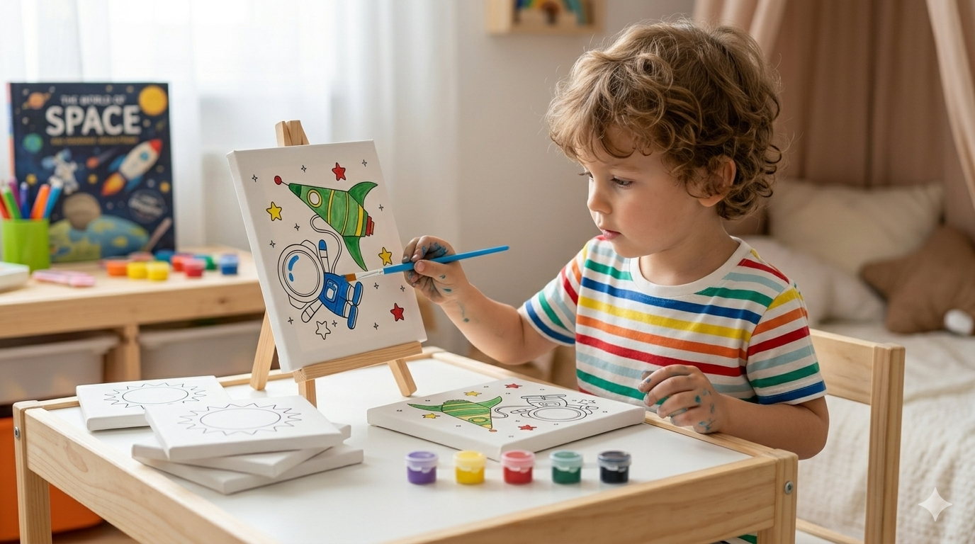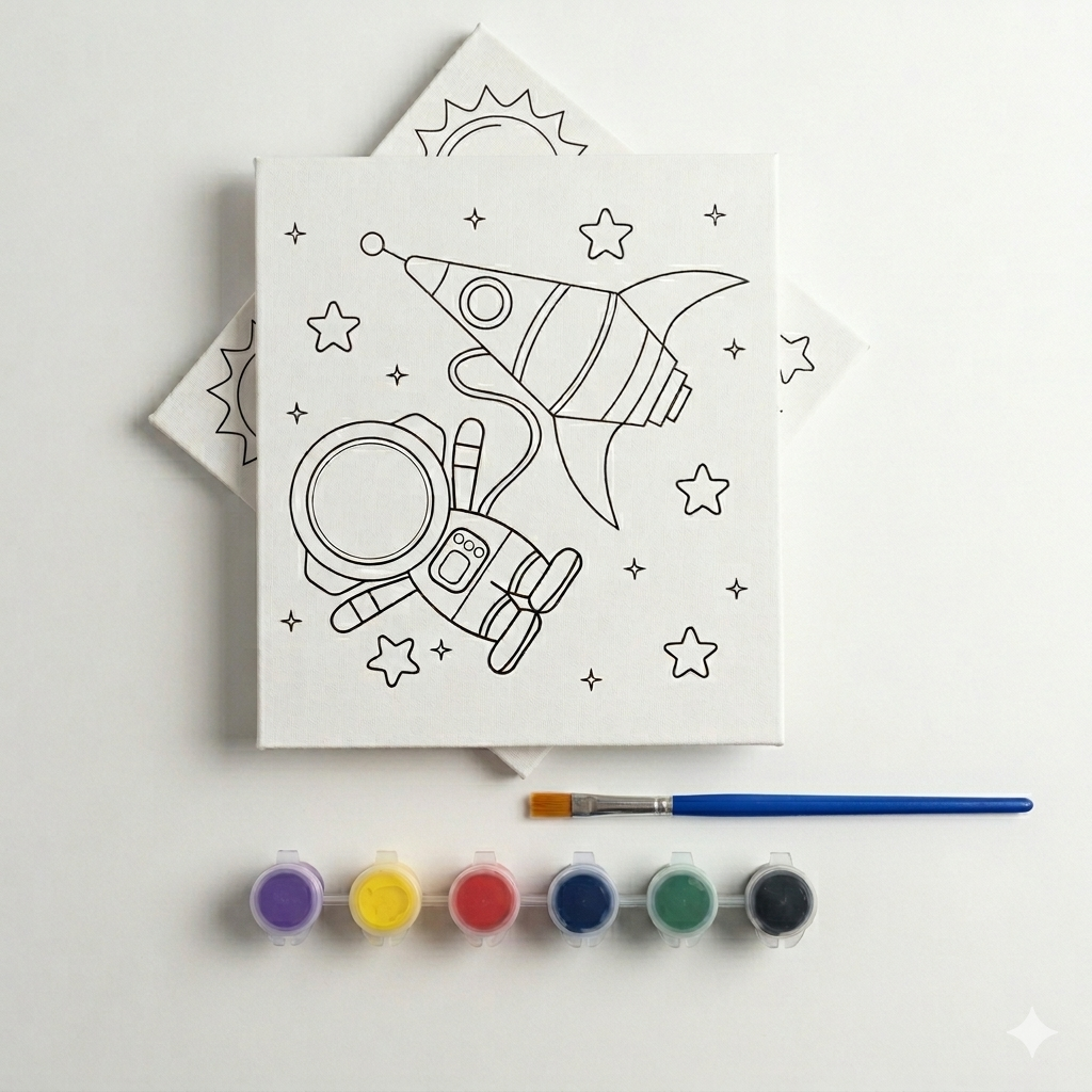 Çocuğunuzun odasını bir sanat atölyesine çevirmeye ne dersiniz? Tablotan güvencesiyle sunulan bu özel “Uzay Macerası” Kanvas Boyama Seti, minik sanatçıların hem el becerilerini geliştiriyor hem de onlara eğlenceli bir öğrenme süreci sunuyor.